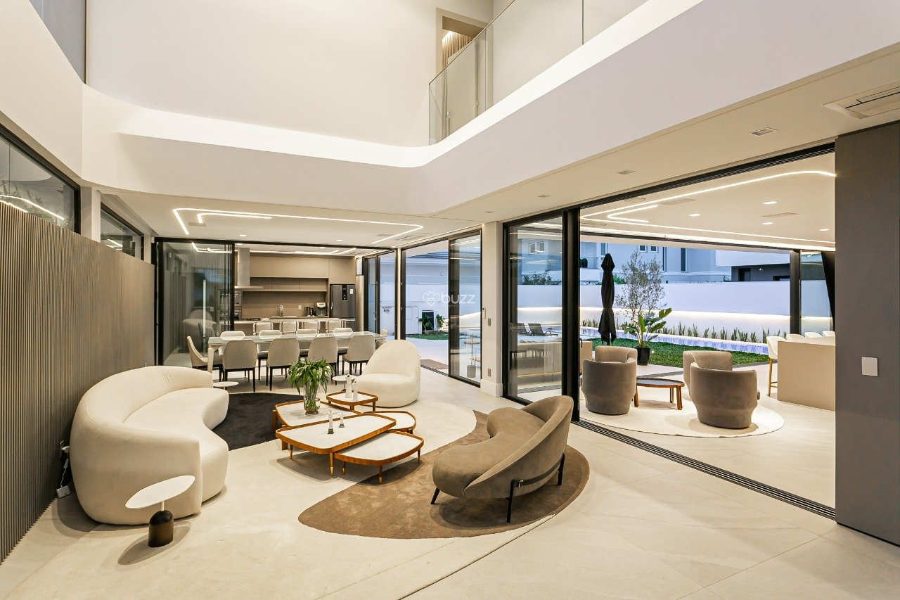 Linhas curvas que envolvem a estrutura da casa e proporcionam uma iluminação deslumbrante. Assinado por Rafael Castro, renomado arquiteto com projetos em diversos países da América Latina, Europa e Arábia Saudita. Cada obra assinada por ele é uma peça única, elevando o conceito de exclusividade.